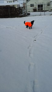 Check out my snazzy HUNTER ORANGE coat! It’s even waterproof!