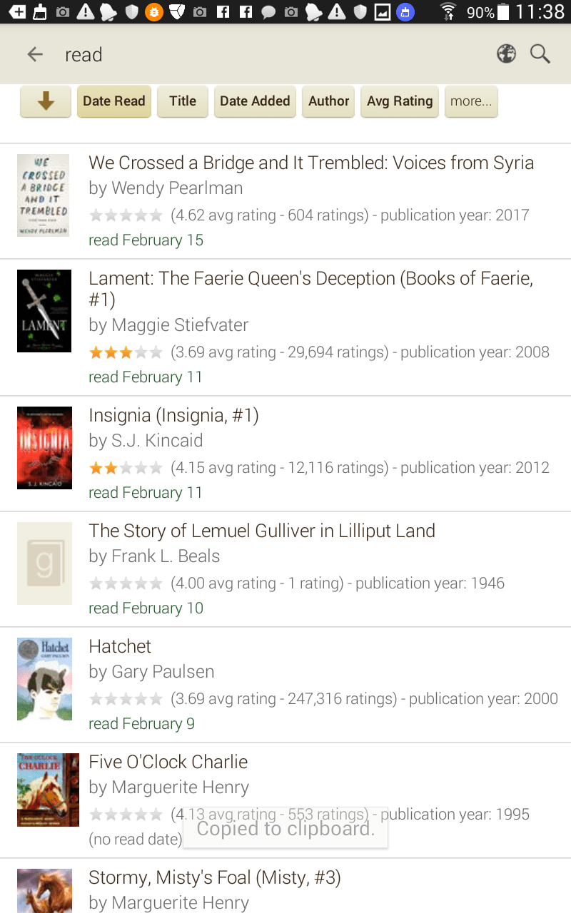 I can’t possibly recreate the entire list from memory. (Yes, I reported the matter to Goodreads. No solution yet.)