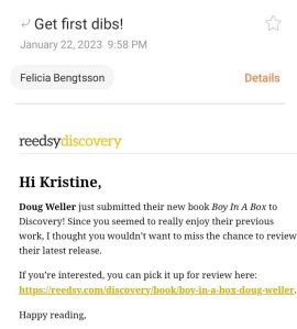 Every once in awhile I get a “First Dibs” notice from Reedsy. It typically goes something like: